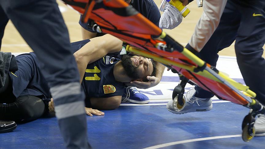 Gazanfer Bilge Spor Salonu'nda oynanan maçta Ennis, ilk çeyrekte kendisine yapılan faul sonrası sert bir şekilde düşerek acı içinde yerde kaldı.