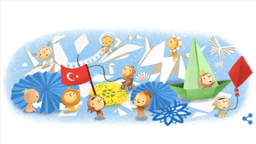 Google ana sayfasında 23 Nisan Ulusal Egemenlik ve Çocuk Bayramı için hazırlanan doodle yer alıyor.