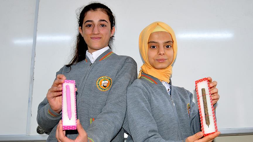 Ağaç yaprakları, çay demi ve muz kabuğundan elde ettikleri yapıştırıcıyı kullanarak yaptıkları kalemle TÜBİTAK Türkiye finalinde ikincilik elde eden öğrenciler, hazırladıkları projeyle takdir topladı.