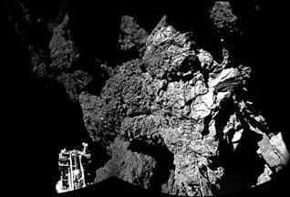 Almanya’daki Güneş Sistemi Araştırma Merkezi'nin bünyesindeki Max Planck Enstitüsü’nde kuyruklu yıldız araştırma görevlisi olarak çalışan Sierks, kaya parçasının üzerinde, 67P'nin tabanıyla aynı parlaklık ve yapıda benekler bulunmasının özellikle merak uyandırdığına işaret etti. Sierks, “Sanki kuyruklu yıldızın yüzeyini kaplayan toz, kaya parçasının çatlaklarını doldurmuş gibi gözüküyor. Ancak elbette bundan emin olmak için henüz çok erken” dedi.