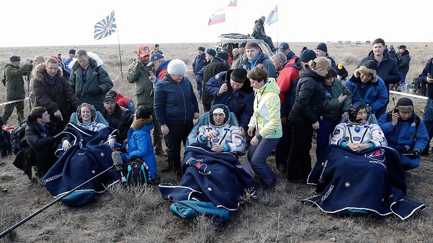 Kazakistan'ın Jezkazgan şehri yakınlarına iniş yapan kapsülden çıkarılan Rubins, İvanşin ve Onişi'nin, sağlık kontrolleri için yakındaki tıbbi çadıra götürüldüğü bildirildi. Astronotlar, yer çekimine yeniden alışmalarının ardından testlerden geçirilecek.