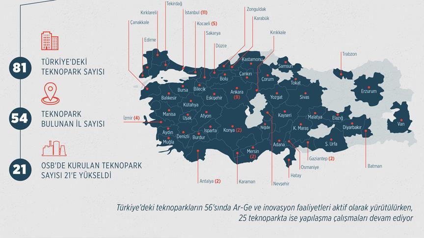 Özlü, Resmi Gazete'de kuruluş kararları yayımlanan Çankırı Teknoloji Geliştirme Bölgesi, Kastamonu Üniversitesi Teknoloji Geliştirme Bölgesi, Kırklareli Üniversitesi Teknoloji Geliştirme Bölgesi ve TeknoHAB Teknoloji Geliştirme Bölgesi ile birlikte Türkiye'deki teknopark sayısının 81'e yükseldiğine dikkati çekerek, bu teknoparkların 56'sında Ar-Ge faaliyetleri gerçekleştirilirken, 25'inde yapılaşma çalışmalarının devam ettiğini bildirdi.