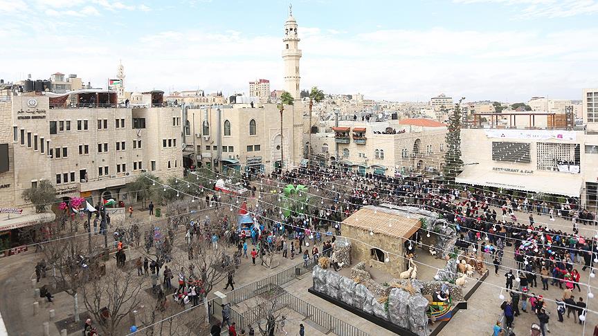 Batı Şeria'nın güneyinde Hazreti İsa'nın doğum yeri olarak bilinen Beytullahim'de sabah saatlerinde başlayan Noel kutlamalarının teması, "Kudüs, Filistin devletinin başkenti" olarak belirlendi.