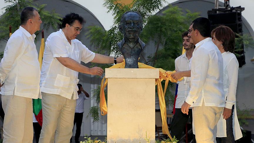 Şehirde, Marquez’in ailesi, arkadaşları ve yerel yetkililerin katıldığı bir törenle yazarın anısına bronz bir büst ithaf edildi. Büstün altındaki mezar taşında yazarın küllerinin bir kısmının muhafaza edildiği kaydedilirken, kalan kısmının ise 2014’e kadar yıllarca yaşamını sürdürdüğü Meksiko şehrinde bırakıldığı belirtildi.