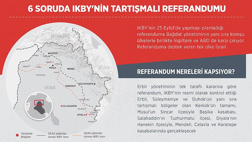 IKBY'nin tartışmalı referandumuna başta Irak merkezi hükümeti olmak üzere komşu ülkelerle ABD ve İngiltere de karşı çıkıyor.