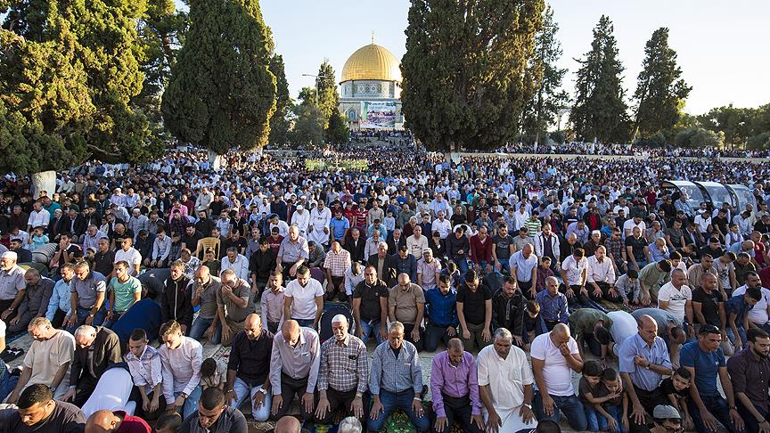 Kudüs'teki Vakıflar Müdürlüğü Basın Biriminden yapılan açıklamaya göre, 90 binden fazla Müslüman bayram namazını Aksa'da eda etti.