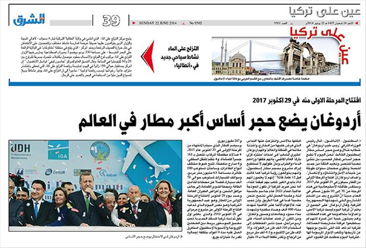 Katar'da yayınlanan Eş-Şark gazetesi, Haziran 2012'de ilk sayısına yer verdiği "Ayn Ala Türkiye" (Türkiye'ye Bakış) isimli Türkiye ekinin 21'incisini okuyucularıyla paylaştı.