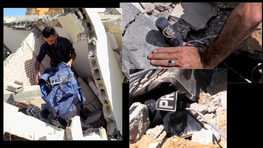 Saldırıda bina tamamen yıkılırken bölgede İsrail'in işlediği suçların yanı sıra Filistinlilerin yaşadığı acıları ve umutları da belgeleyen AA foto muhabirlerinin ekipmanlarının çoğu kullanılamaz hale geldi.
