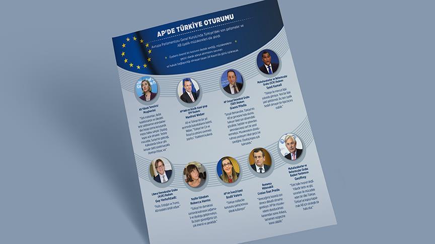 Türkiye-AB ilişkileri başlıklı karar tasarısının ele alındığı dünkü oturumda, parlamentodaki siyasi grupların bir kısmı, Türkiye'de son dönemde yaşanan gelişmeler ışığında müzakerelerin geçici olarak durdurulmasına ilişkin görüş beyan ederken bir kısmı da Türkiye-AB ilişkilerinin ortak kazanımlarına dikkat çekmişti.