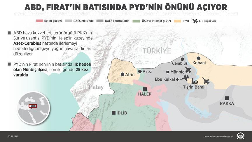 Yerel kaynaklar, hava saldırılarının, PYD'nin Fırat Nehri'nin batısında DAEŞ kontrolündeki Cerablus'a doğru ilerlemek amacıyla uzun süredir planladığı "Münbiç operasyonu"na yardım için düzenlendiğini ifade ediyor.
