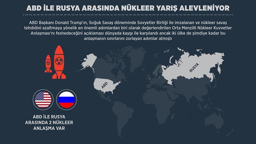 ABD Başkanı Donald Trump'ın, Soğuk Savaş döneminde Sovyetler Birliği ile imzalanan ve nükleer savaş tehdidini azaltmaya yönelik en önemli adımlardan biri olarak değerlendirilen Orta Menzilli Nükleer Kuvvetler Anlaşması'nı feshedeceğini açıklaması dünyada kaygı ile karşılandı.