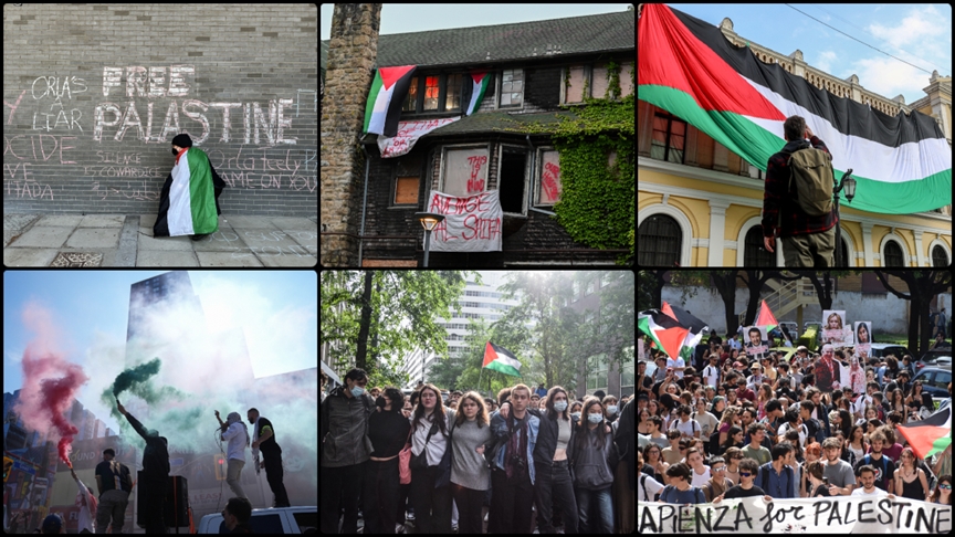 Dünyanın dört bir yanındaki üniversitelerde öğrenciler, Columbia Üniversitesi'nde başlayan gösterilere destek vermek ve İsrail'in Gazze'ye saldırılarını protesto etmek amacıyla kampüslerinde toplanıyor.