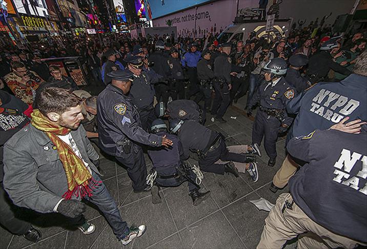 Tünelden Times Square'e geçen göstericiler, burada 7. caddeyi trafiğe kapatmak isteyince polis grubu dağıtmak için biber gazı ile müdahale etti. Müdahale sırasında polis bazı göstericileri gözaltına aldı.