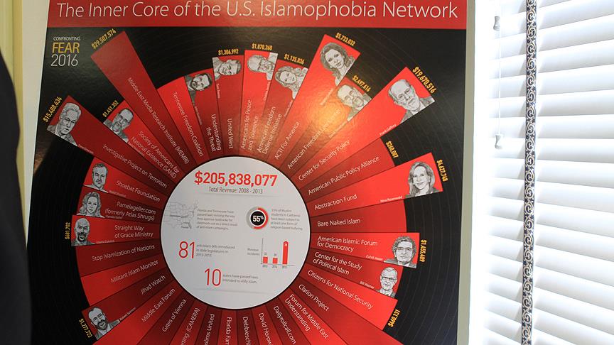 CAIR'den Corey Saylor, Irk ve Cinsiyet Merkezinden ise Hatem Bazian'ın öncülüğünde gerçekleştirilen araştırmaya göre, 2008-2013 yılları arasında toplam 205 milyon dolarlık kaynağın aktarıldığı İslamofobik gruplar, özellikle Paris ve San Bernardino saldırılarından sonra ABD'de ortaya çıkan İslamofobik atmosferde önemli rol oynadı. 10 eyalette İslamofobik kanunların yürürlüğe girdiği belirtilen raporda, her yıl ortalama 20 civarında cami saldırısının yaşandığı ülkede 2015 yılında ise toplam 78 saldırının gerçekleştiği ve bunun kaygı verici bir istatistik olduğu vurgulandı.