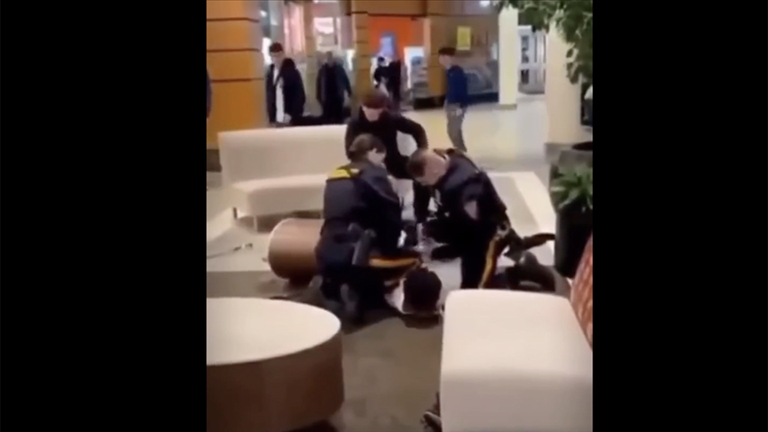 AVM'deki olaya müdahale eden iki polis memuru ilk önce gençleri ayırdı. Daha sonra beyaz tenli gence herhangi bir müdahalede bulunmayan polis memurları, siyahi genci yüzüstü yere yatırarak diziyle sırtına bastırdı ve ellerini kelepçeledi.