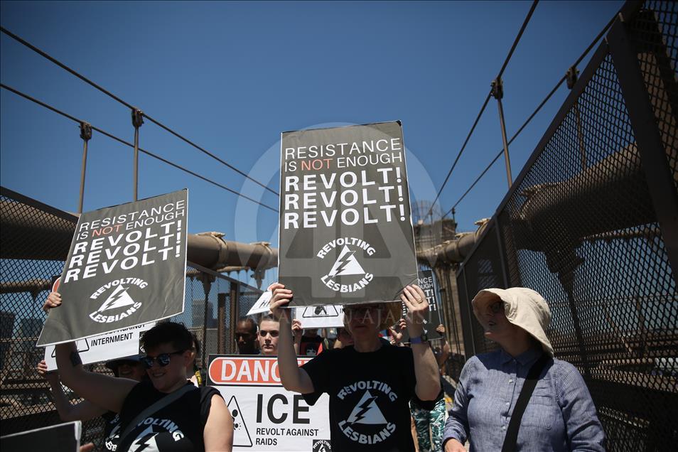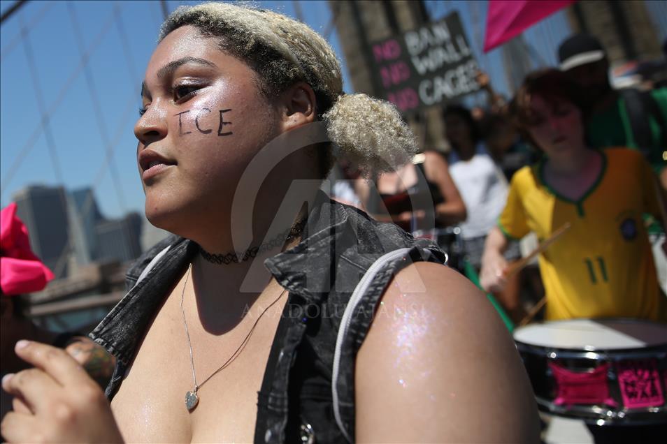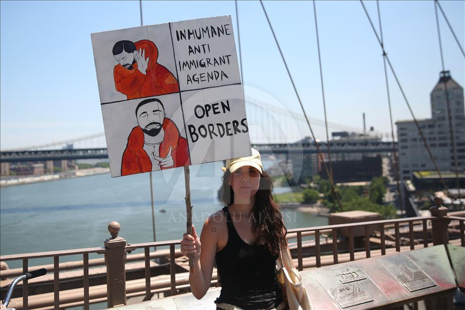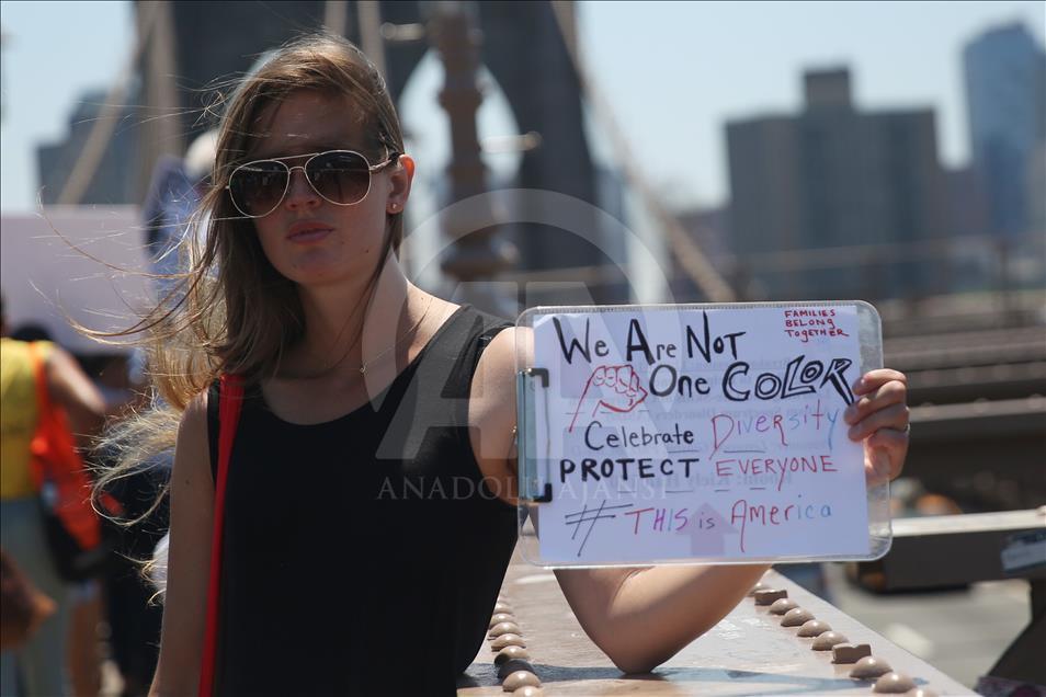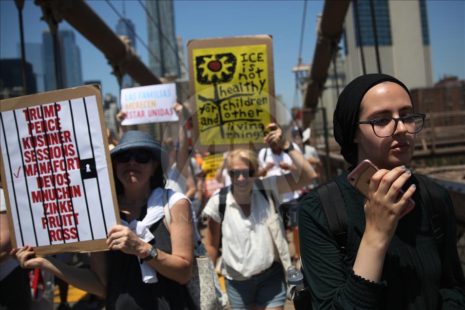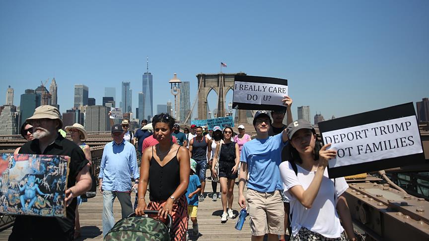 ABD genelinde yüz binlerce kişi, ülkeye yasa dışı yollardan giren göçmenlerin çocuklarını ailelerinden ayıran tartışmalı göçmen politikası nedeniyle Trump yönetimini protesto etti. Trump'ın doğum yeri ve Demokratlar'ın kalesi New York'ta binlerce protestocu Brooklyn Köprüsü'nde yürüdü. ( Mohammed Elshamy - Anadolu Ajansı )