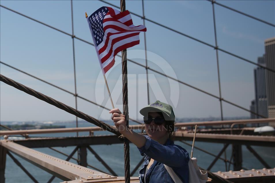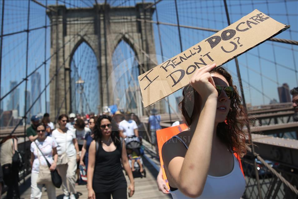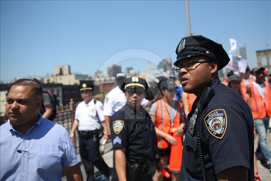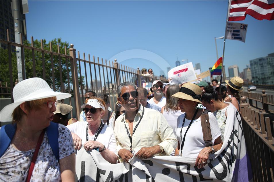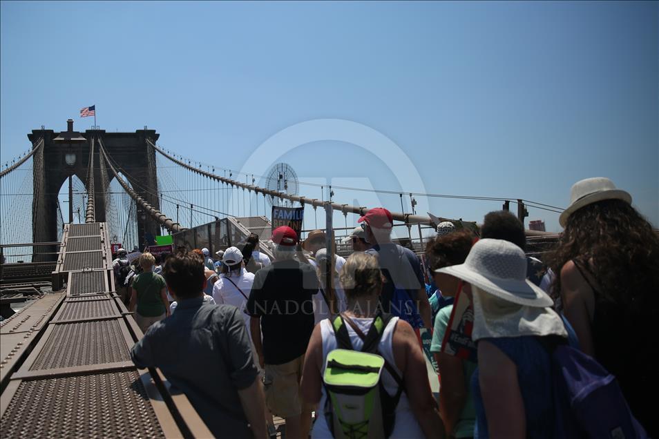 ABD genelinde yüz binlerce kişi, ülkeye yasa dışı yollardan giren göçmenlerin çocuklarını ailelerinden ayıran tartışmalı göçmen politikası nedeniyle Trump yönetimini protesto etti. Trump'ın doğum yeri ve Demokratlar'ın kalesi New York'ta binlerce protestocu Brooklyn Köprüsü'nde yürüdü. ( Mohammed Elshamy - Anadolu Ajansı )