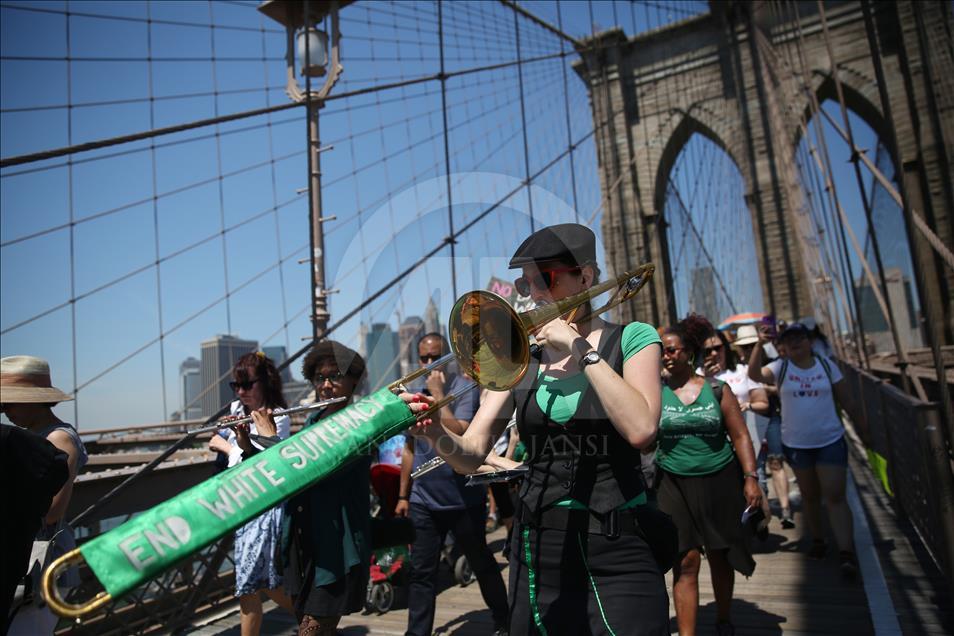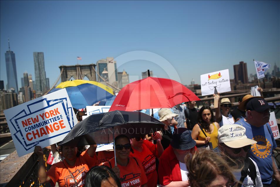 Trump'ın doğum yeri ve Demokratlar'ın kalesi New York'ta binlerce protestocu Brooklyn Köprüsü'nde yürüdü.