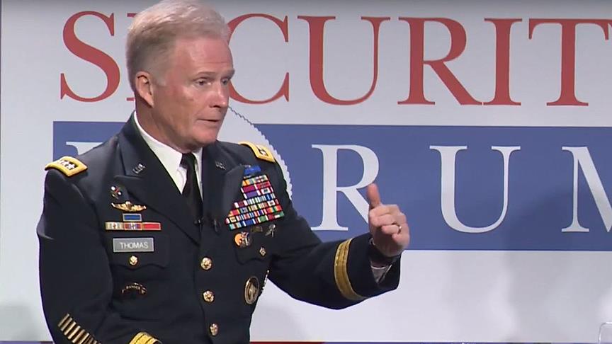 ABD Özel Kuvvetler Komutanı Orgeneral Raymond Thomas, geçen yıl ABD'nin önemli düşünce kuruluşlarından Aspen Enstitüsünün Colorado eyaletinde gerçekleştirilen yıllık güvenlik toplantısında terör örgütü PKK/PYD ile ilgili açıklamalarda bulunmuştu.