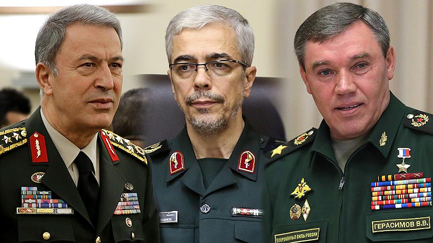 Genelkurmay Başkanı Orgeneral Hulusi Akar, Rusya Genelkurmay Başkanı Orgeneral Valeriy Gerasimov ve İran Genelkurmay Başkanı Tümgeneral Muhammed Bakıri ile Rusya'nın Soçi şehrinde düzenlenen üçlü toplantıda görüştü.