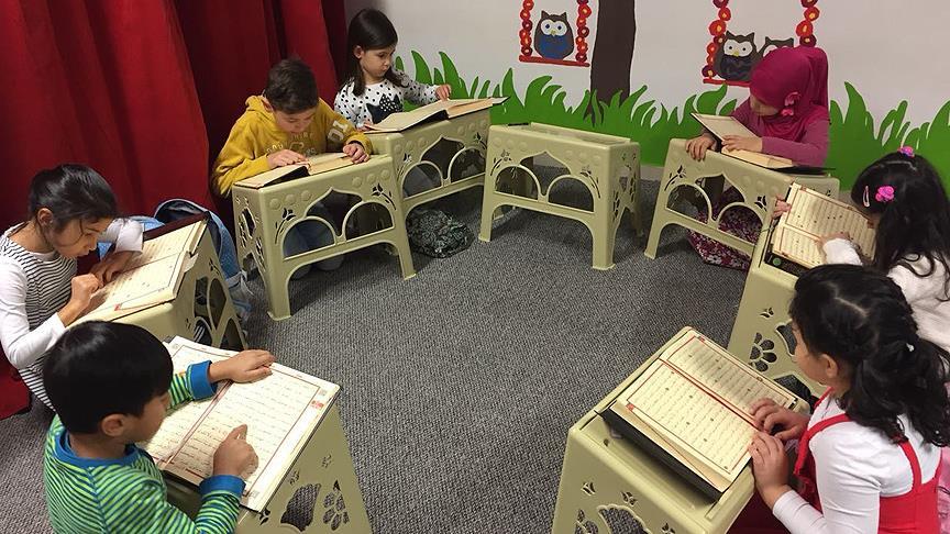 Almanya'nın Bonn kenti yakınlarında Diyanet İşleri Türk İslam Birliği (DİTİB) tarafından yürütülen ve 4-6 yaş grubu 50 öğrencinin katıldığı programda çocuklara, ders müfredatına göre dini bilgiler öğretiliyor ve Kur'an-ı Kerim eğitimi veriliyor.