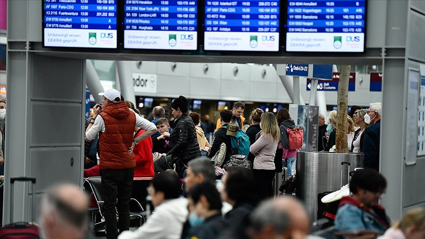 Düsseldorf Havalimanında, dün planlanan 160 uçuştan 84'ünün, Köln/Bonn Havalimanından ise 63 uçuştan 35'inin iptal edildiği belirtildi.