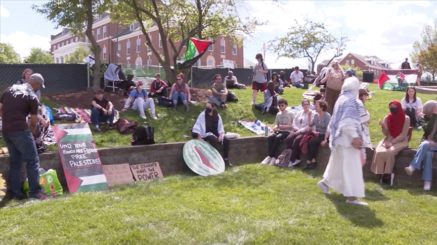 ABD'de başkent Washington'a yarım saatlik mesafedeki Maryland Üniversitesinden bir grup öğrenci de, İsrail'in Gazze'deki saldırılarına tepki amacıyla üniversite kampüsünün bahçesinde eyleme başladı.
