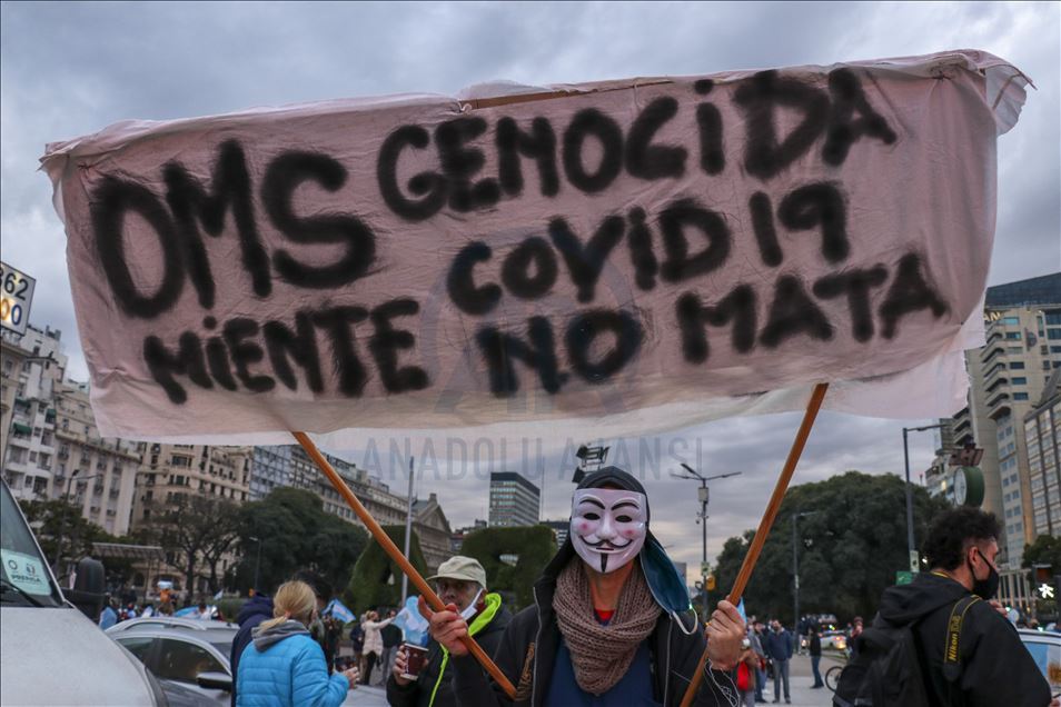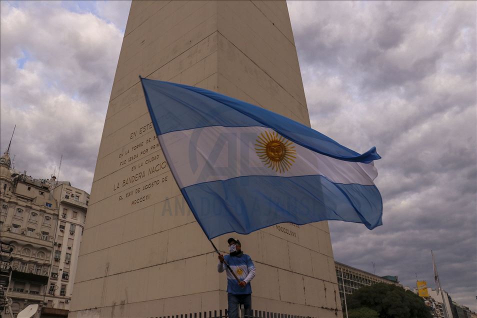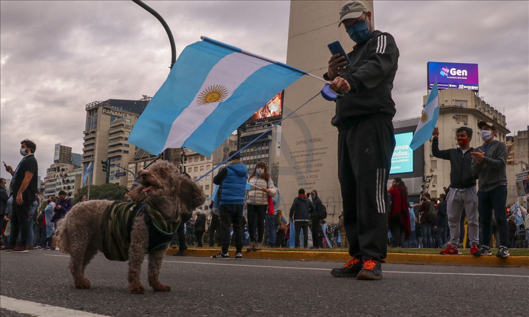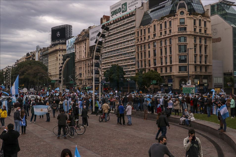Arjantin'in başkenti Buenos Aires'in merkezindeki Dikilitaş'ta toplanan kalabalık, yeni tip koronavirüs (Kovid-19) salgınına karşı uygulanan karantinayı ve hükümeti protesto etti.