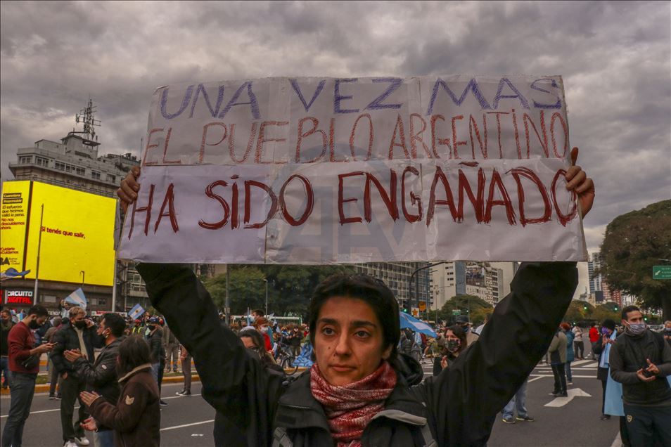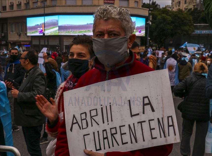 Arjantin'in başkenti Buenos Aires'te yeni tip koronavirüs (Kovid-19) salgını nedeniyle 3 aydır uygulanan karantina ve Devlet Başkanı Alberto Fernandez hükümeti karşıtı gösteri düzenlendi. ( Muhammed Emin Canik - Anadolu Ajansı )