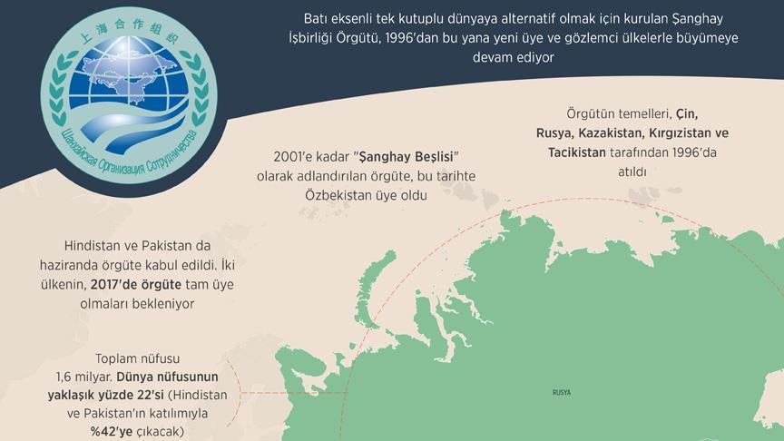 ŞİÖ'nün son olarak haziran ayında Özbekistan'ın başkenti Taşkent'te düzenlediği zirvede, Hindistan ve Pakistan örgüte kabul edildi. İki ülkenin, 2017'de Astana'da yapılacak zirvede örgüte tam üye olmaları bekleniyor.