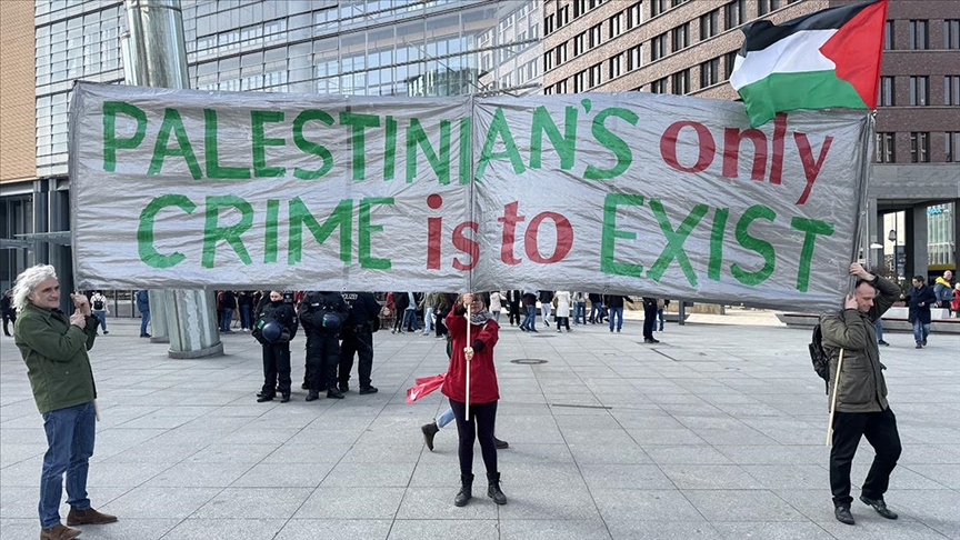 Almanya'nın başkenti Berlin'deki Filistin derneklerinin çağrısıyla Potsdamer Meydanı'nda yüzlerce kişi, "Filistin ile dayanışma" için bir araya geldi.