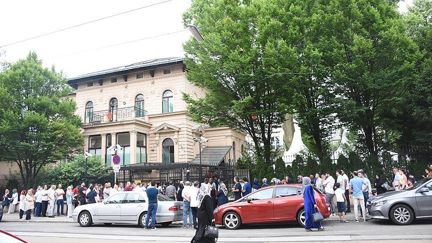 Viyana Başkonsolosluğuna yerel saatle 09.00'da oy kullanmaya gelen vatandaşlar, hafta sonu olması nedeniyle uzun kuyruklar oluşturdu.