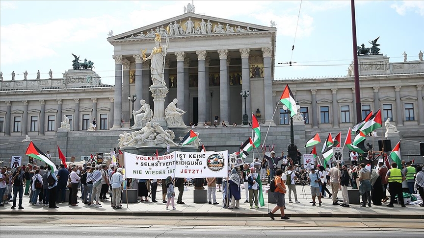Gösteride konuşan Avusturyalı aktivist Martin Weinberger, her cumartesi olduğu gibi bu cumartesi de Filistin’in sesini duyurmak ve 260 gündür süren "soykırıma" karşı durmak için parlamento önünde toplandıklarını ifade etti.