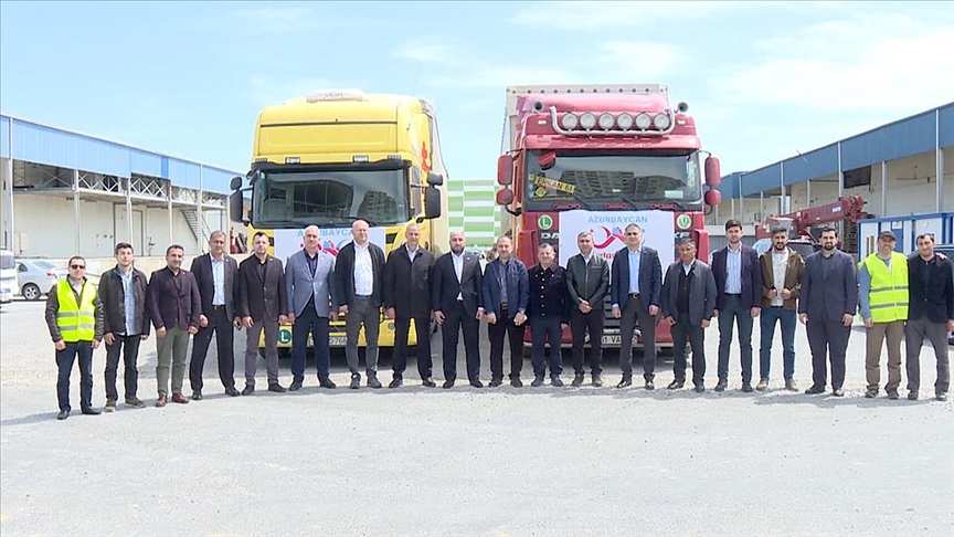 Bazı sivil toplum kuruluşlarının oluşturduğu "Kardeş Kömeği (Yardımı)" platformunun organizasyonunda toplanan ihtiyaç malzemeleri ve gıda paketlerinin yüklendiği 2 tır, Bakü'den uğurlandı.
