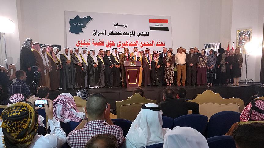 Erbil'de aşiret liderlerinin katıldığı ve "Ninova, kurtuluşa evet yıkıma hayır" temasıyla düzenlenen toplantının ardından yapılan yazılı açıklamada, Türkiye'nin terörle mücadeleye ve kentlerin kurtarılmasına verdiği destek memnuniyetle karşılanırken Ninova'nın merkezi Musul'un kurtarılması için başlatılacak operasyona Haşdi Şabi milislerinin katılmasına karşı çıkıldı.