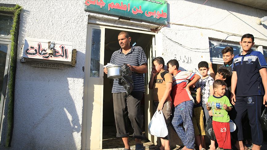 Irak'ın başkenti Bağdat'ın Azamiye bölgesinde bulunan Çorbahane Aşevi'nde, terör örgütü DEAŞ nedeniyle evlerini terk ederek kamplarda yaşayan aileler ile ihtiyaç sahipleri için ramazan boyunca her gün iftar veriliyor.