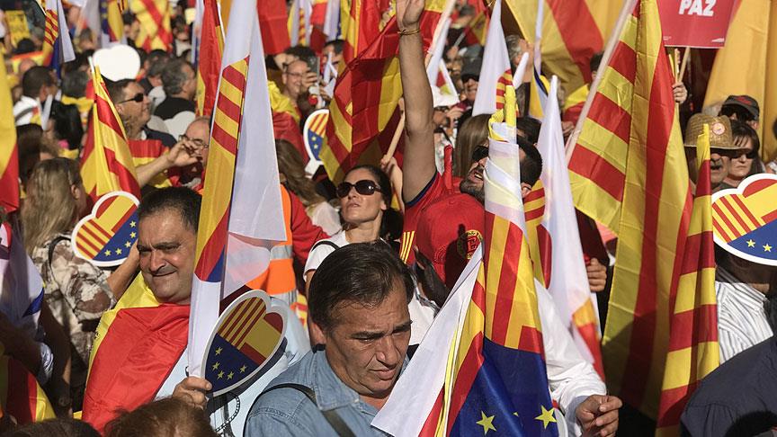 "Societat Civil Catalana" (Katalan Sivil Toplumu) adlı sivil toplum örgütünün çağrısıyla toplanan binlerce kişi, ellerinde İspanyol, Katalonya ve Avrupa Birliği (AB) bayraklarıyla bağımsızlık girişimlerine karşı çıkarak, ulusal birliği, anayasal düzeni ve birlikte yaşamı savundu.