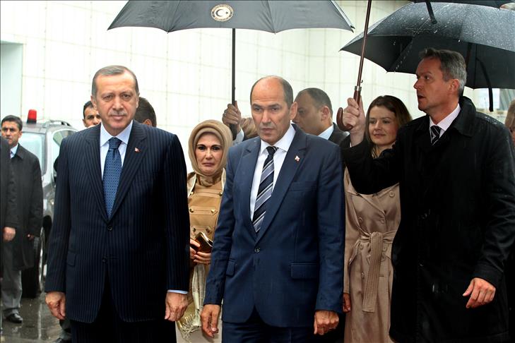Slovenya Başbakanı Jansa, eşi Urska Jansa ile birlikte Hükümet Sarayı'nda Başbakan Erdoğan ve eşi Emine Erdoğan'ı karşıladı. İki ülke milli marşlarının çalınmasının ardından Başbakan Erdoğan tören kıtasını denetledi.