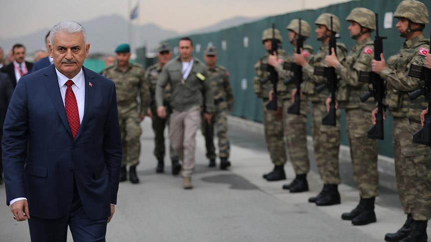 Başbakan Binali Yıldırım, resmi temasları kapsamında Afganistan Cumhurbaşkanı Eşref Gani ile görüşmesinin ardından Hamid Karzai Uluslararası Havalimanı'na gitti. Burada, Afganistan Türk Görev Kuvveti Komutanlığını (ATGK) ziyaret eden Yıldırım, birliğe gelişinde askerler tarafından karşılandı.