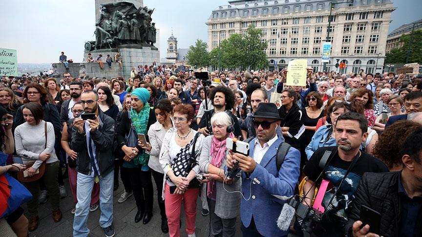 Çeşitli sivil toplum kuruluşlarının çağrısı üzerine akşam saatlerinde yüzlerce kişi Brüksel'deki Adalet Sarayı önünde toplandı.