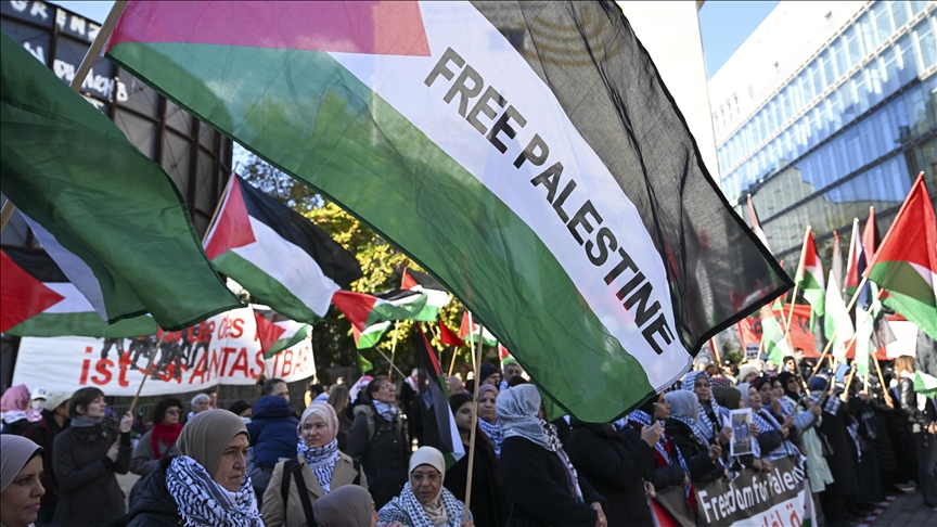 Anlık gelişmeler için AA Canlı Göstericiler, Gazze'ye insani yardımın girmesini, İsrail'in Filistin topraklarındaki işgalin son bulmasını, İsrail Başbakanı Binyamin Netanyahu'nun yargılanmasını ve Almanya'nın İsrail'e desteğini kesmesini talep etti.