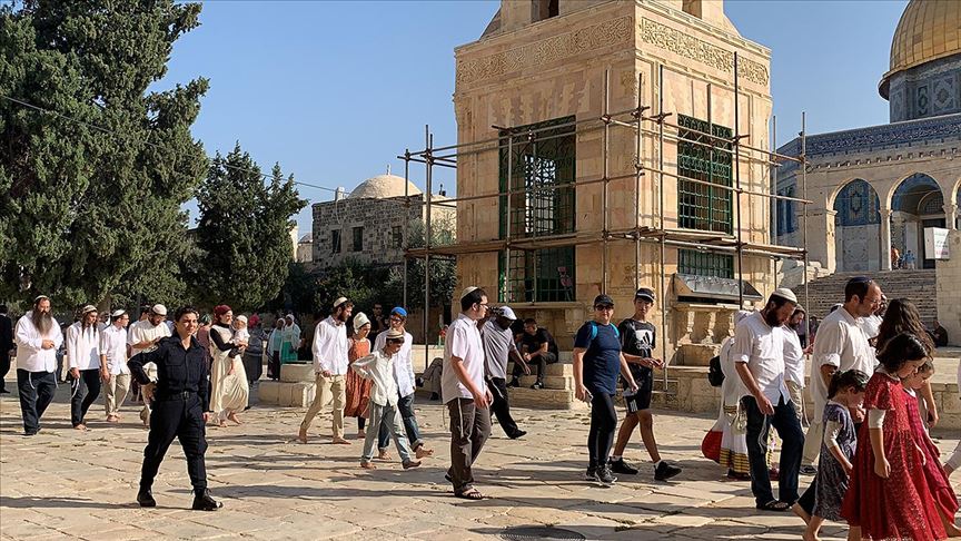 İsrail polisinin eşlik ettiği bini aşkın fanatik Yahudi, işgal altındaki Doğu Kudüs'ün Eski Şehir bölgesinde bulunan Mescid-i Aksa'nın avlusuna girdi.