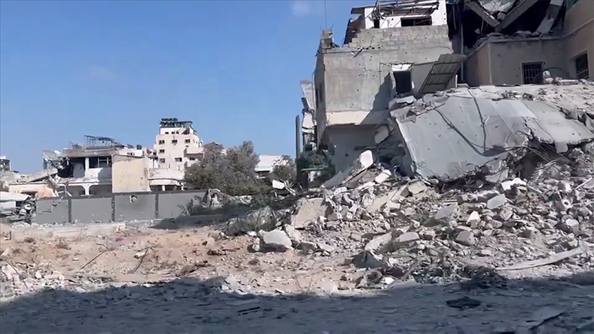 Görüntüde, neredeyse hedef alınmayan binanın bulunmadığı kentteki ağır yıkım dikkati çekiyor.