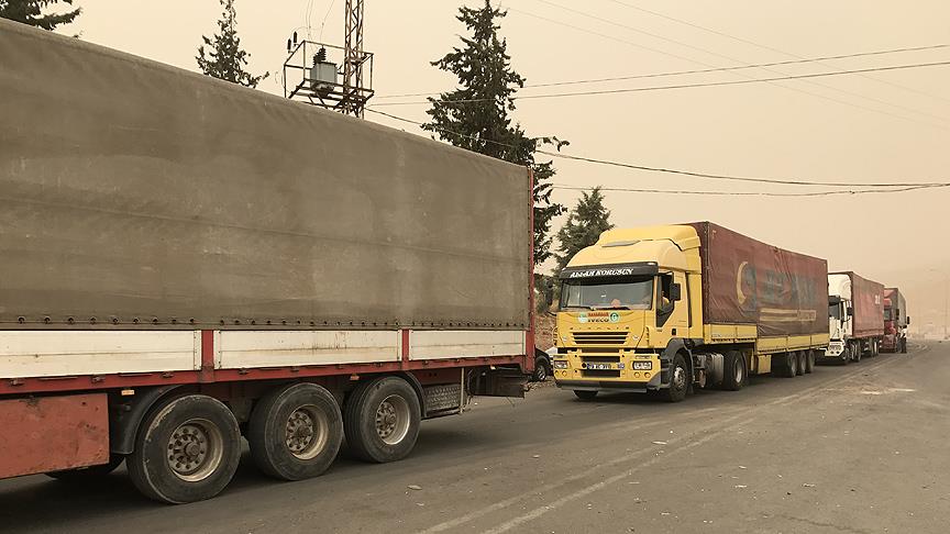 Tırlardaki insani yardım malzemelerinin İdlib ve kırsalındaki ihtiyaç sahiplerine dağıtılacağı öğrenildi.
