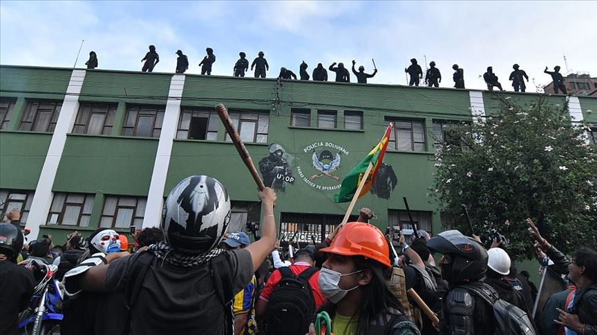 Ülke basınındaki haberlere göre, Sucre, Santa Cruz ve Cochabamba kentlerindeki bazı polisler, Devlet Başkanı Evo Morales hükümetine karşı bayrak açtı. Polisler, seçimlerde hile yapıldığı iddiasıyla şiddet eylemlerine dönüşen protesto gösterilerine devam eden muhaliflere katıldı.
