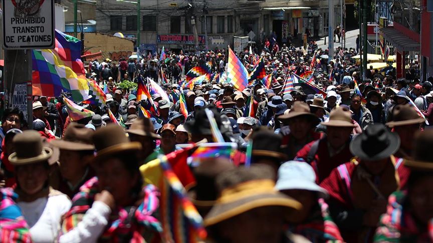 Sakin bir hafta sonu geçiren başkent La Paz'ın sokakları, kent çevresindeki 20 farklı bölgeden yola çıkan ve And Dağlarındaki yerlilerin ortak bayrağı Whipala taşıyan binlerce gösterici tarafından yeniden dolduruldu.