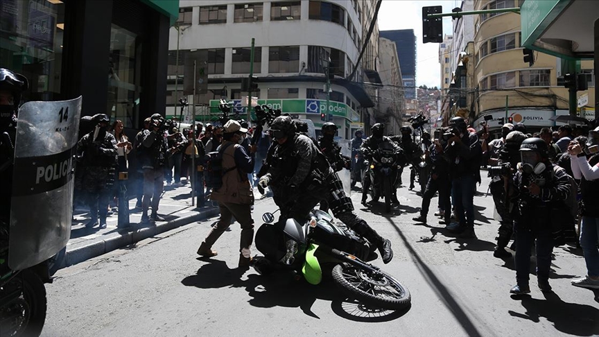 Başkent La Paz'da bir araya gelen Bolivya Şehir Eğitimi İşçileri Konfederasyonuna (CTEUB) bağlı öğretmenler, devlet binalarının bulunduğu Plaza Murillo meydanına yürüdü.