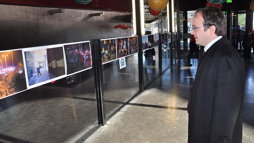 Etkinliğin yapıldığı salonda Fetullahçı Terör Örgütü'nün (FETÖ) 15 Temmuz'daki darbe girişimine ilişkin Anadolu Ajansı (AA) muhabirlerinin çektiği fotoğraflar sergilendi.