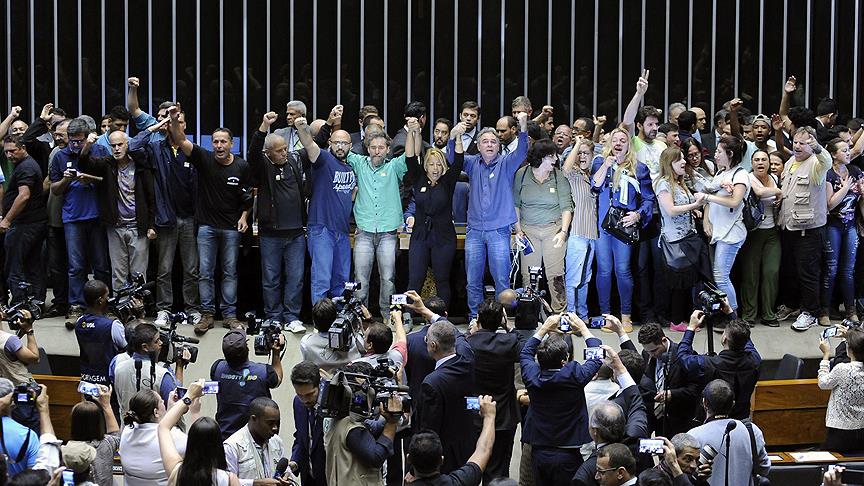Brezilya basınında yer alan haberlere göre, Kongre'nin alt kanadını basan en az 40 göstericiyle güvenlik güçleri arasında arbede yaşandı.