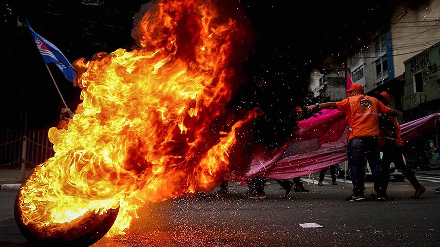 Brezilya'da, Devlet Başkanı Michel Temer hükümetinin işçi hakları ve emeklilik sisteminde yaptığı değişiklikleri protesto eden halk genel greve gitti.